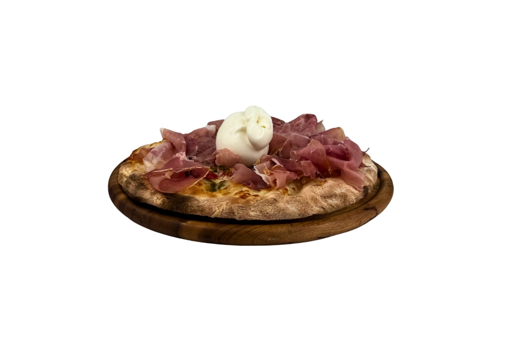 Mozzarella,Pomodorini, Burrata, Pesto, Prosciutto Cotto ![]() Allergeni:Cereali e derivati, Lattosio |