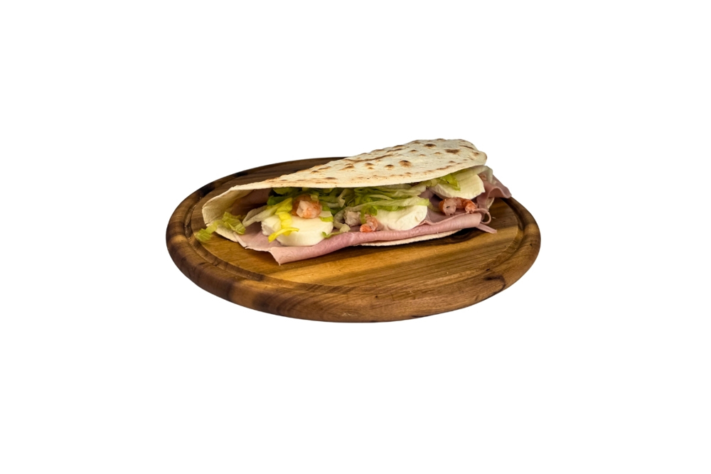 Prosciutto Cotto, Mozzarella, Gamberetti, Insalata, Salsa cocktail ![]() Allergeni:Cereali e derivati, Crostacei, Lattosio |